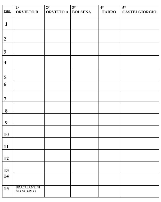 1° Orvieto B 2° Orvieto A 3° Bolsena 4° Fabro 5° Castel Giorgio