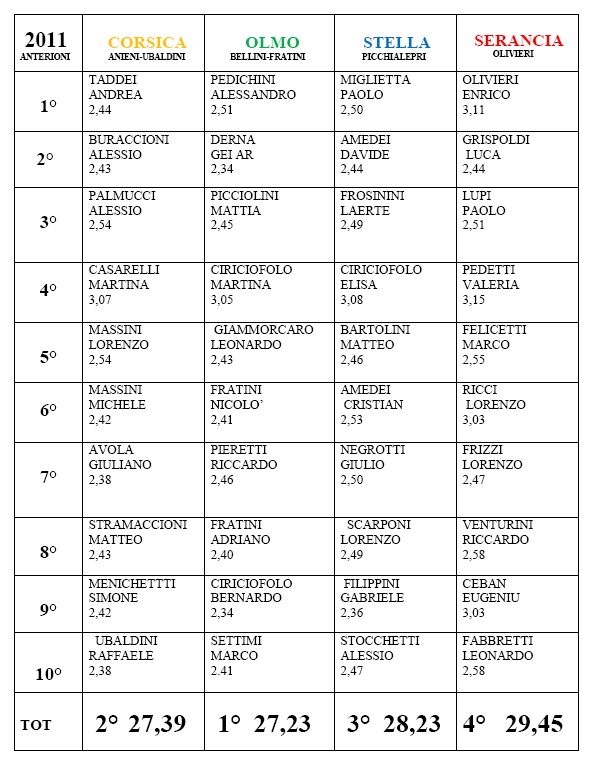 Tempo totale dei vincitori: 27′ 23″ (Olmo)