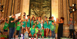 A Orvieto il bianco-verde non passa di moda. E’ praticamente un’egemonia senza fine la supremazia inarrestabile dell’Olmo, che con una gestione quasi perfetta dei propri frazionisti si è aggiudicato, per la settima volta consecutiva, la Staffetta dei Quartieri di Orvieto. Non proprio brillanti le prove dei dieci frazionisti, ma i bianco-verdi di Fratini e Bellini hanno comunque dimostrato, in questa 52sima edizione, di possedere una marcia in più. A loro, dunque, ancora il diritto di alzare la coppa al cielo ai piedi della Cattedrale di Orvieto dopo aver tagliato il traguardo davanti ai giallo-rossi del Corsica, arrivati secondi, ai giallo-blu del Santa Maria della Stella e ai bianco-rossi del Serancia. L’Olmo-piglia-tutto stavolta ha stravinto tutto quello che c’era da vincere: bianco-verde è la migliore frazionista donna, Anna Gnagnarini con un crono di 3’06″68, bianco-verde è il miglior frazionista master, Simone Sarri con 2’59″52 e bianco-verde è il migliore di tutti, il più veloce tra i frazionisti, Nicolò Fratini, con il tempo di 2’30″35. Non c’è storia: sono sempre loro, i ragazzi terribili dell’Olmo, a portarsi a casa tutta la posta in palio. Segnali positivi però arrivano dal Corsica, sul quale molti puntano come vero outsider in grado di spezzare l’onda bianco-verde. Buone cose si sono viste nella staffetta dei ragazzi delle scuole medie, che ha visto il trionfo dello Stella davanti a Olmo, Serancia e Corsica. Vivacissime e partecipate le staffette dei bambini: nella Mini (bambini delle elementari dalla seconda alla quinta classe) la vittoria è andata ai gialli del Corsica davanti a Serancia, Olmo e Stella. Piccolissimi ma agguerriti i giovanissimi della Microstaffetta (bambini dell’asilo e prima elementare), che ai piedi del Duomo ha visto prevalere i rossi del Serancia, davanti a Stella, Corsica e Olmo. Una serata che ha portato in piazza tantissimi orvietani. Tra tutti merita una menzione speciale il dottor Andrea Bonifazi, che ha realizzato e donato alla staffetta quattro nuovi testimoni, a led luminosi visibili quindi anche da lontano, mandando così in pensione i testimoni di alluminio, che vari anni fa avevano sostituito quelli storici in legno.