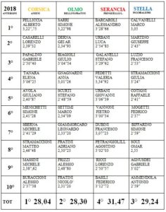 Miglior frazionista donna ancora lei, Anna Gnagnarini (Olmo, 3’01.26), miglior frazionista master Marco Calvanelli (Stella, 3’05), migliore frazionista assoluto Nicolò Fratini (Olmo, 2’31.20).