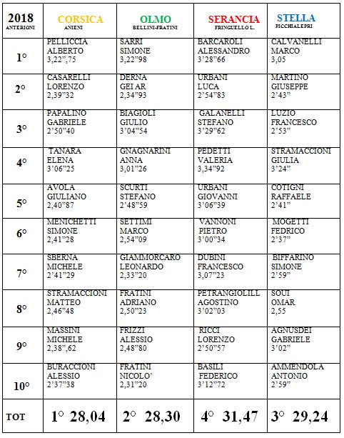 E alla fine è il Corsica a spezzare l’egemonia dell’Olmo che durava ormai da sette edizioni consecutive. I giallorossi si sono imposti grazie ad una gara che ha visto, dopo una partenza in testa del S. Maria dello Stella davanti all’ Olmo, un crescendo delle prestazioni dei vari frazionisti. Una cavalcata culminata con l’ultima frazione affidata ad Alessio Buraccioni. Ammaina bandiera l’Olmo ma non demorde e si piazza secondo, davanti a Stella e Serancia.