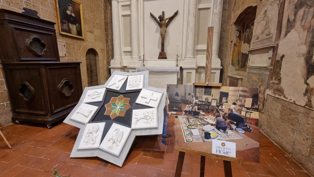 Titolo scelto per l’opera, ultimata a maggio 2015, “Un fiore per la città“. Nata dall’estro del Maestro Santo Vincenzo Ciconte, alla guida del Laboratorio di Scultura dell’Università delle Tre Età di Orvieto che, su invito del presidente Riccardo Cambri, aveva scelto in questo modo di dare il proprio contributo all’evento di primavera che aveva – e, mai come ora, ha – il senso della rinascita.
